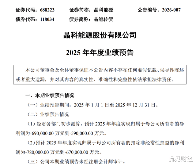 如今,晶科能源已然成为全球光伏巨头,业务覆盖全球近200个国家和地区,累计组件出货量超过370GW,约等于2024年中国全年光伏新增装机总量的4.3倍。不过,过去两年晶科能源过得并不好,行业性的产能过剩、价格崩盘让所有光伏企业遭遇重挫,晶科能源也不例外。业绩预告显示,晶科能源预计2025年将亏损59亿元到69亿元,扣非净利润亏损67亿元到78亿元,和去年同期9837万元的净利润、-9.323亿元的扣非净利润相比亏损有所扩大。